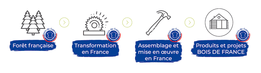 👉 Au minimum 80 % du bois composant un produit certifié doit être français et l’intégralité des opérations de transformation doit se dérouler sur le territoire national.