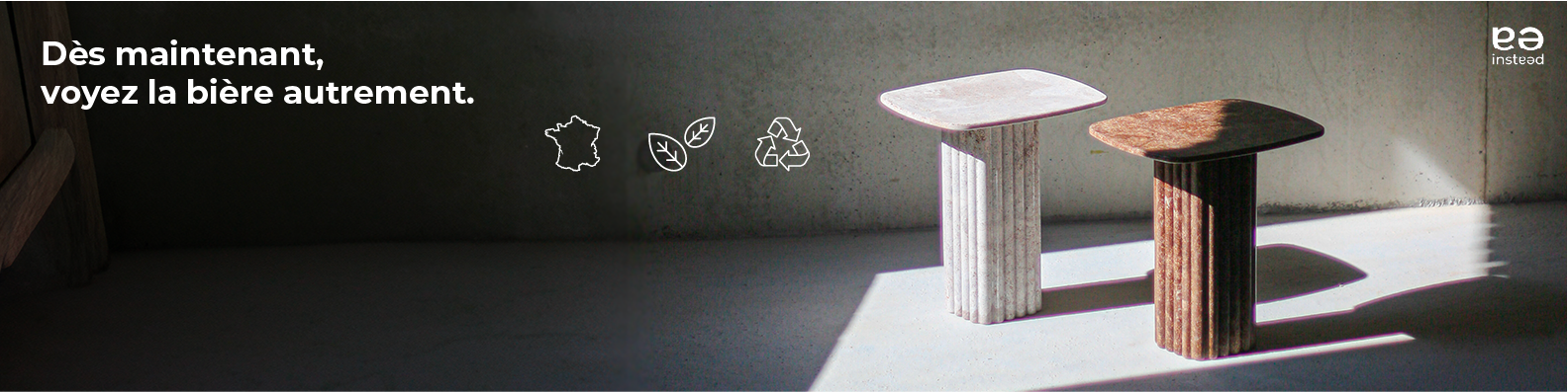 Chez Instead nous concevons du mobilier professionnel éco-responsable et fabriqué en France (à Nantes) à partir des céréales issues du brassage de la bière, la drêche de brasserie.