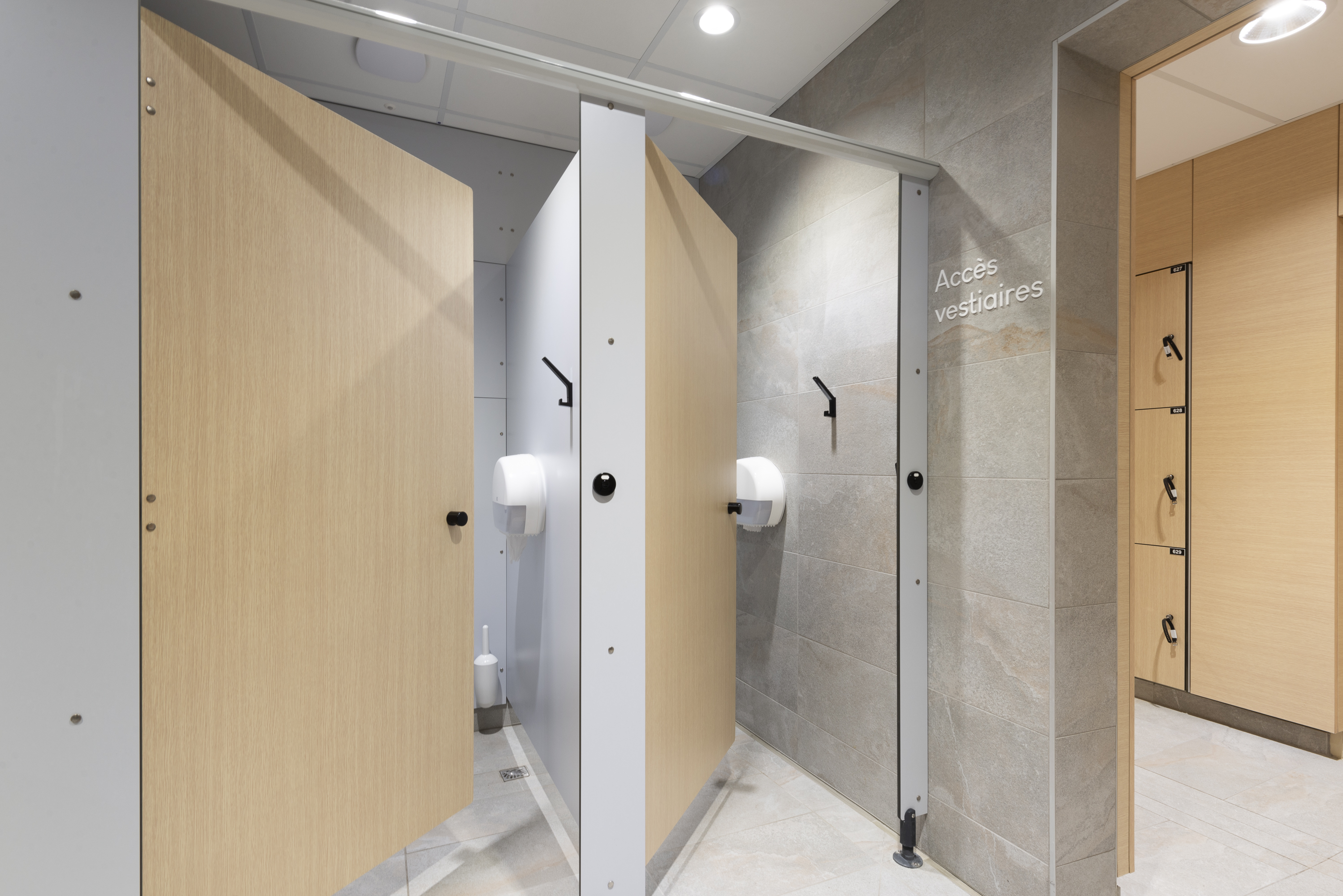 Depuis notre usine en Lorraine, nos équipes travaillent le panneau stratifié compact en proposant des solutions sur-mesure : cabines sanitaires, casiers, portes, plans de toilette, séparations d’urinoirs, mobilier et armoires vestiaires.
