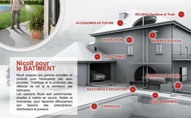 Aujourd'hui, en redéfinissant son savoir-faire sur trois spécialités organisées autour des solutions - Bâtiment, Sanitaire et Environnement Nicoll simplifie l'accès à son offre et renforce son rôle de partenaire des professionnels.