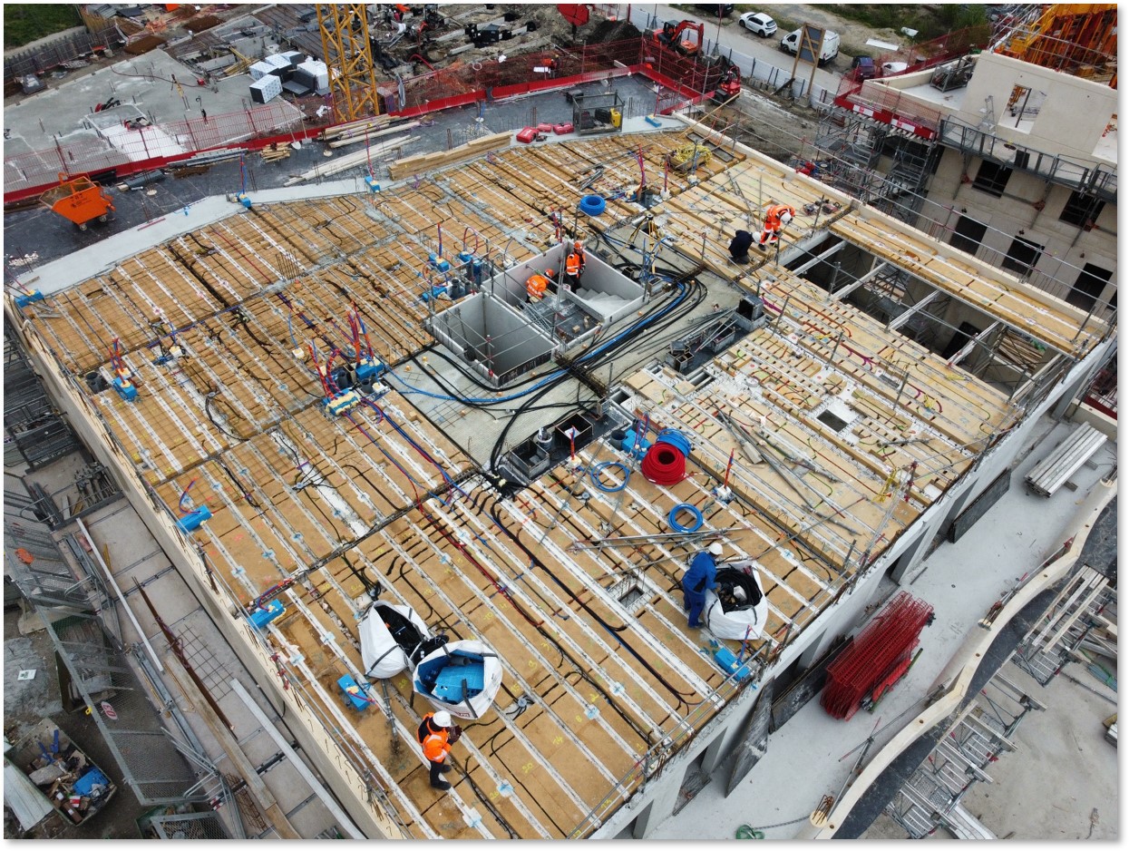 Le plancher Dalle BB est un élément fonctionnel obtenu après avoir complété la Dalle BB avec une dalle de compression en béton de 5 cm mise en œuvre sur chantier.