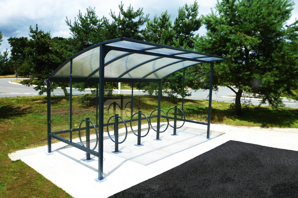 – Abri simple (4×2,5m) peut accueillir 10 emplacements vélos selon le support vélos choisi,