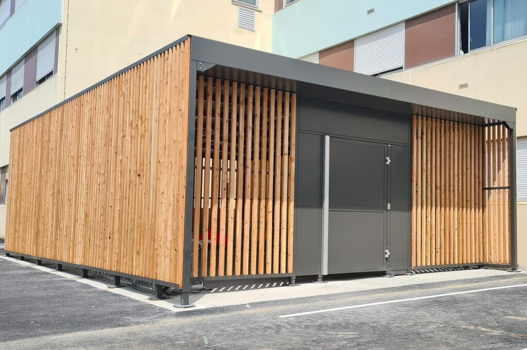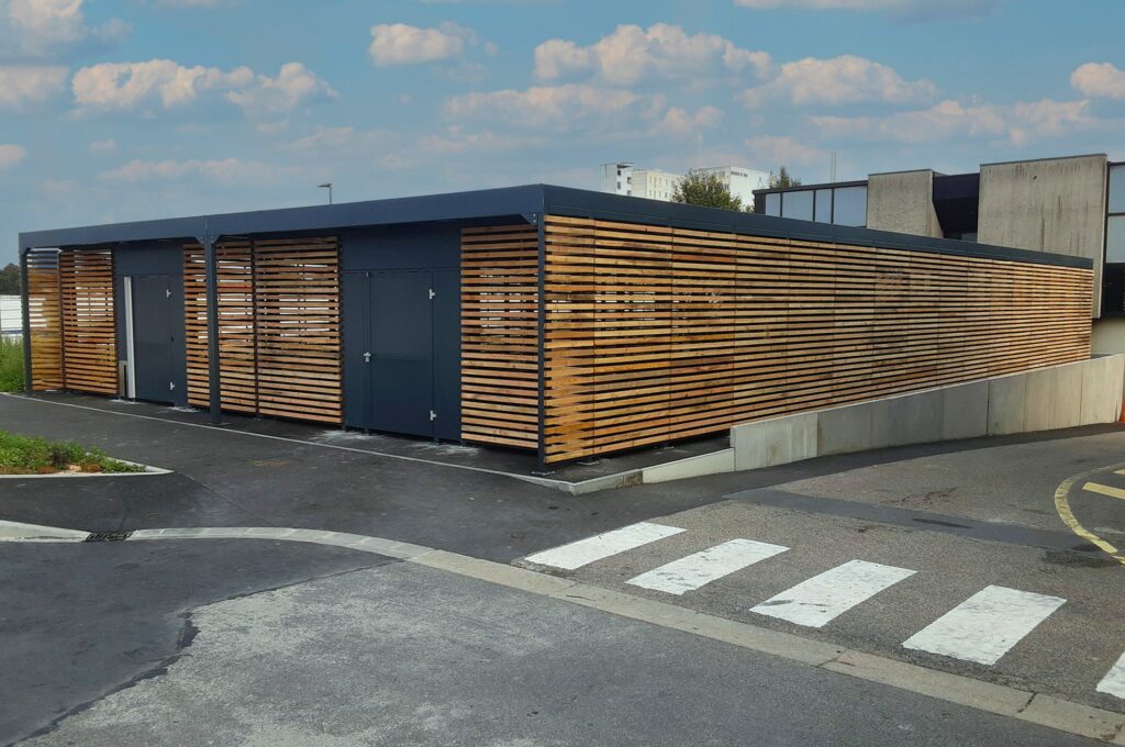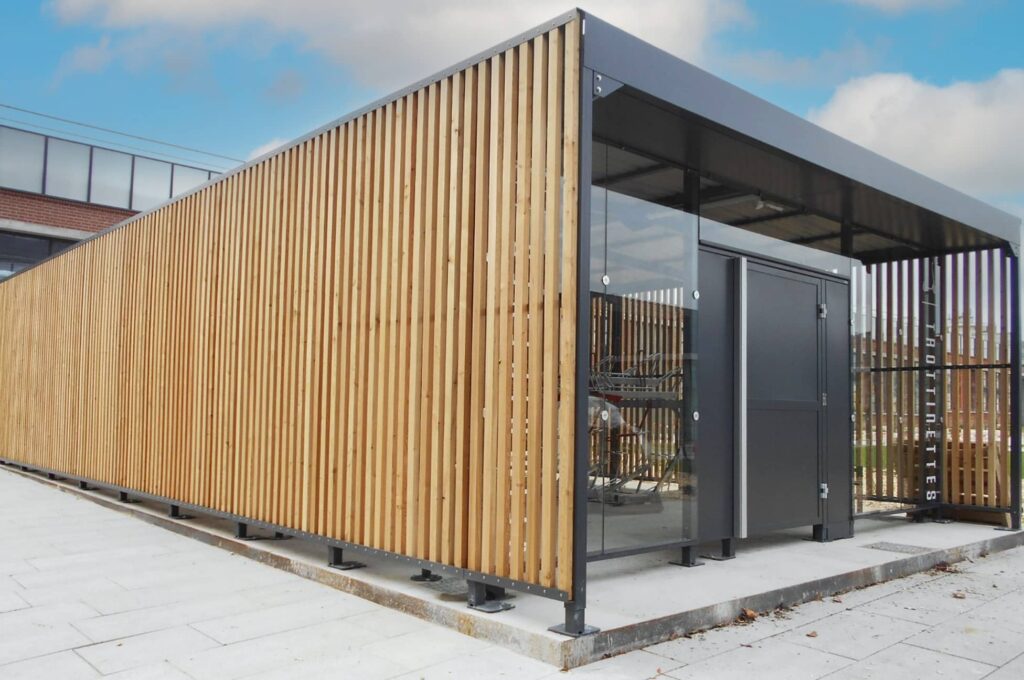 Habillages en tôles perforées, verre securit, bardage bois, ou encore du barreaudage métal vertical, vous pouvez mixer les combinaisons selon les faces de l’abri. Parmi ces propositions, plusieurs combinaisons sont possibles.