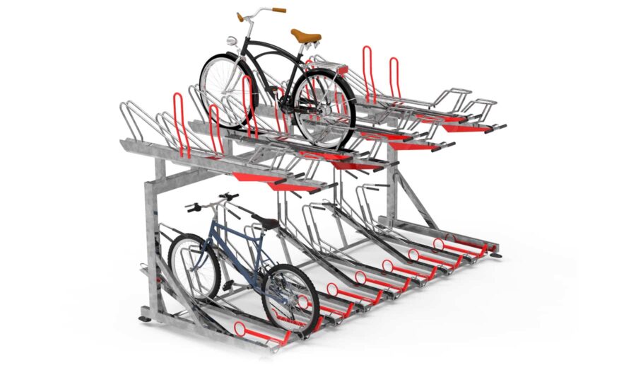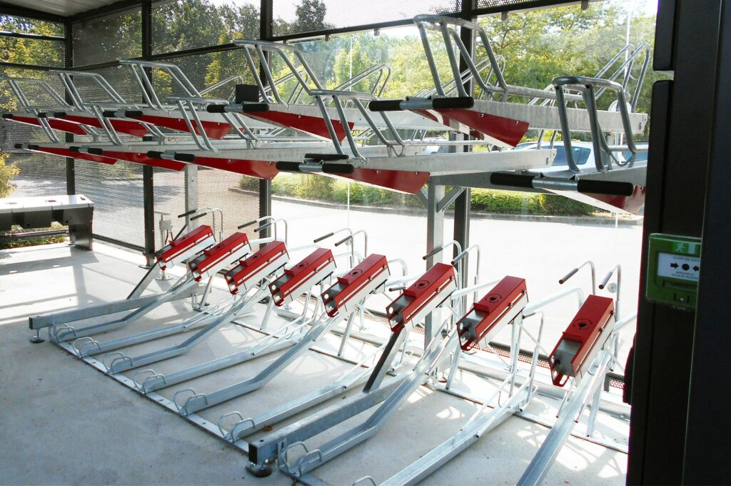 Le rack double étage peut-être installé dans un abri ouvert ou dans un abri vélo fermé.