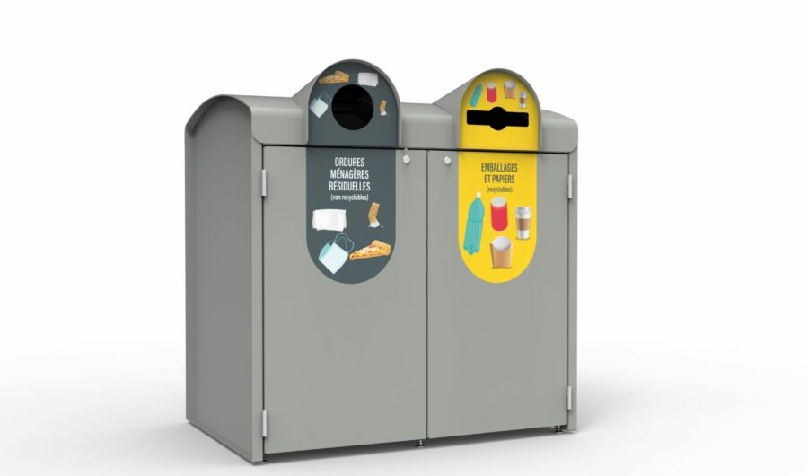 L’abri bac de tri sélectif bi-flux Baco, a une jolie silhouette urbaine et élégante. Avec des ouvertures au choix (trappes, ouvertures réductrice en façade), il peut recevoir un grand conteneur de 660L ou tous types de conteneurs 2 roues de 120L à 360L. L’ouverture se fait de face ou sur le côté. Il facilite le geste de tri des passants grâce à des ouvertures « nudges » et grâce à des supports de communication qui améliorent la compréhension du tri. Il répond aux cahier des charge de CITEO et est donc éligible au financement.