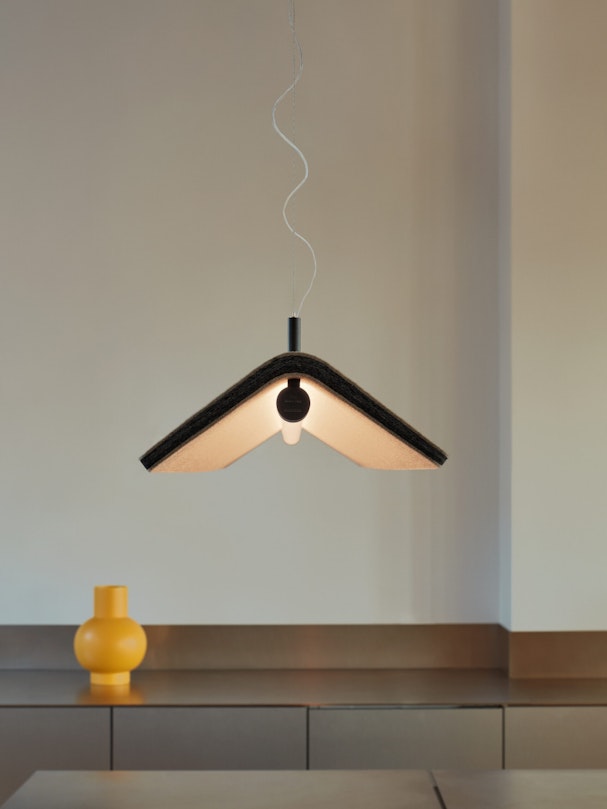 En collaboration avec le designer Khodi Feiz, Abstracta adopte une nouvelle approche de l’éclairage acoustique, qui vise à créer une atmosphère paisible. Le résultat est Vika, un luminaire insonorisant qui rayonne la lumière atmosphérique tout en gérant les bruits à basse et à haute fréquence. « C’est une autre façon de penser le son et la lumière », explique Feiz. « La fonction de Vika est de créer une atmosphère calme. »