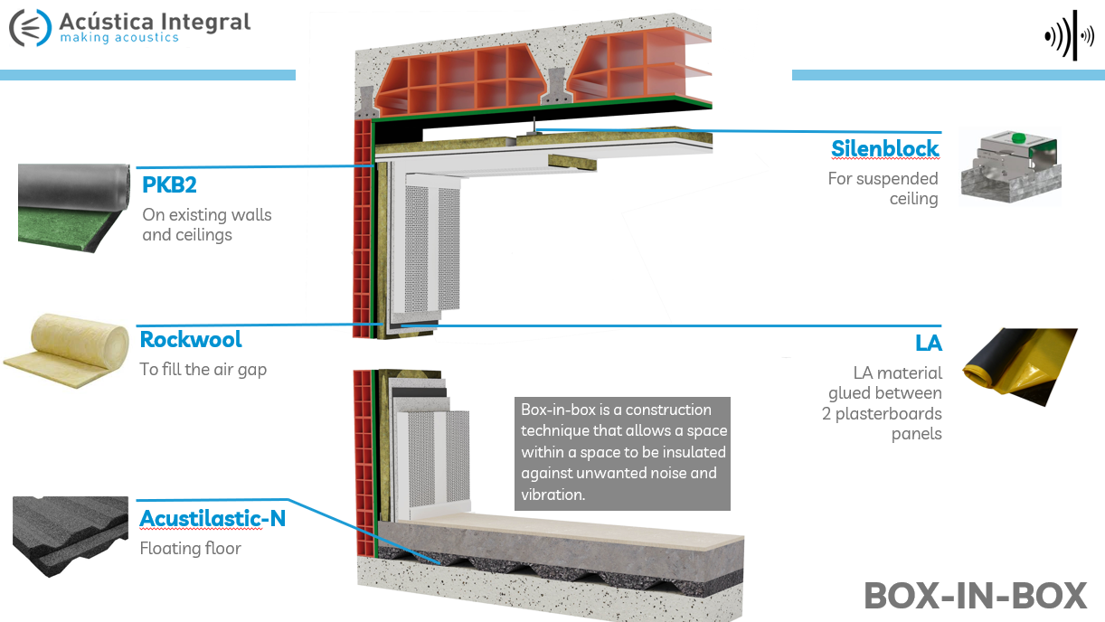 Le produit PKB-2, isolant acoustique de ACUSTICA INTEGRAL, S.L. est prescrit dans des projets de type : Habitat collectif Hôtellerie Restauration Santé Tertiaire Commerce Industrie Écoles Bâtiments publics Sport - Stades Gare - Aeroports Spectacles - Musées .