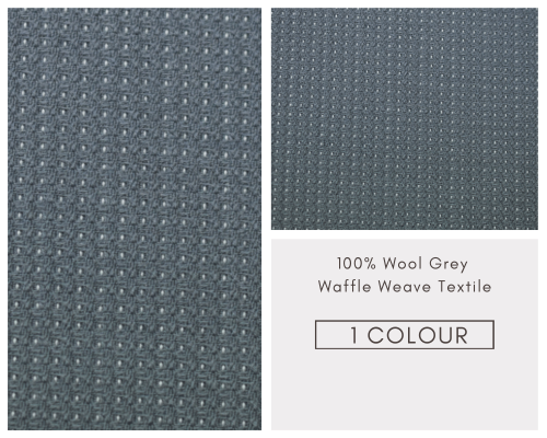 Our grey waffle weave material is purposefully designed for covering pilot seats, prioritizing both style and safety. Crafted with flame-retardant properties, it ensures the highest level of protection for pilots in the cockpit. The material is 95% Wool, 5% Trevira CS and has climate-regulating properties which assure optimised seating comfort for many hours.