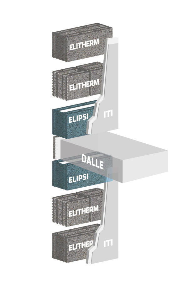 Performance thermique du bâtiment optimisée : traitement des ponts thermiques grâce aux Isoplanel et blocs Elipsi isolants. Evite la pose de rupteurs thermiques dans les planchers
