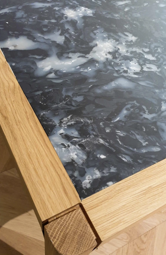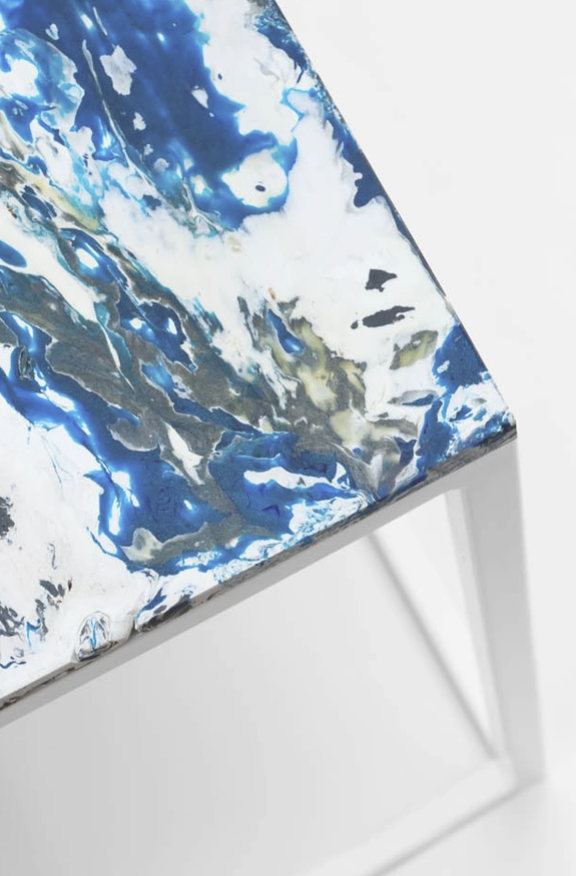 Son application dans les domaines du mobilier, de l'architecture d'intérieur et de la scénographie nous est alors apparue comme une évidence. Nos plaques uniques peuvent ainsi composer parmi d'autres utilisations : des tables, plans de travail ou encore revêtements. Ceci afin de redonner fonction et esthétisme à cette matière devenu inutile et encombrante.