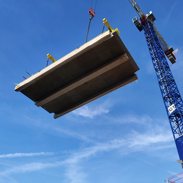 L’Arbodal bb® est un système constructif composé de solives bois connectées mécaniquement à une dalle béton bas carbone préfabriqué, et conçu pour s’adapter à toutes les typologies de bâtiments et répondre aux plus hauts niveaux de performance. Le dimensionnement s'adapte aux exigences acoustiques et sécurité incendie de chaque projet.