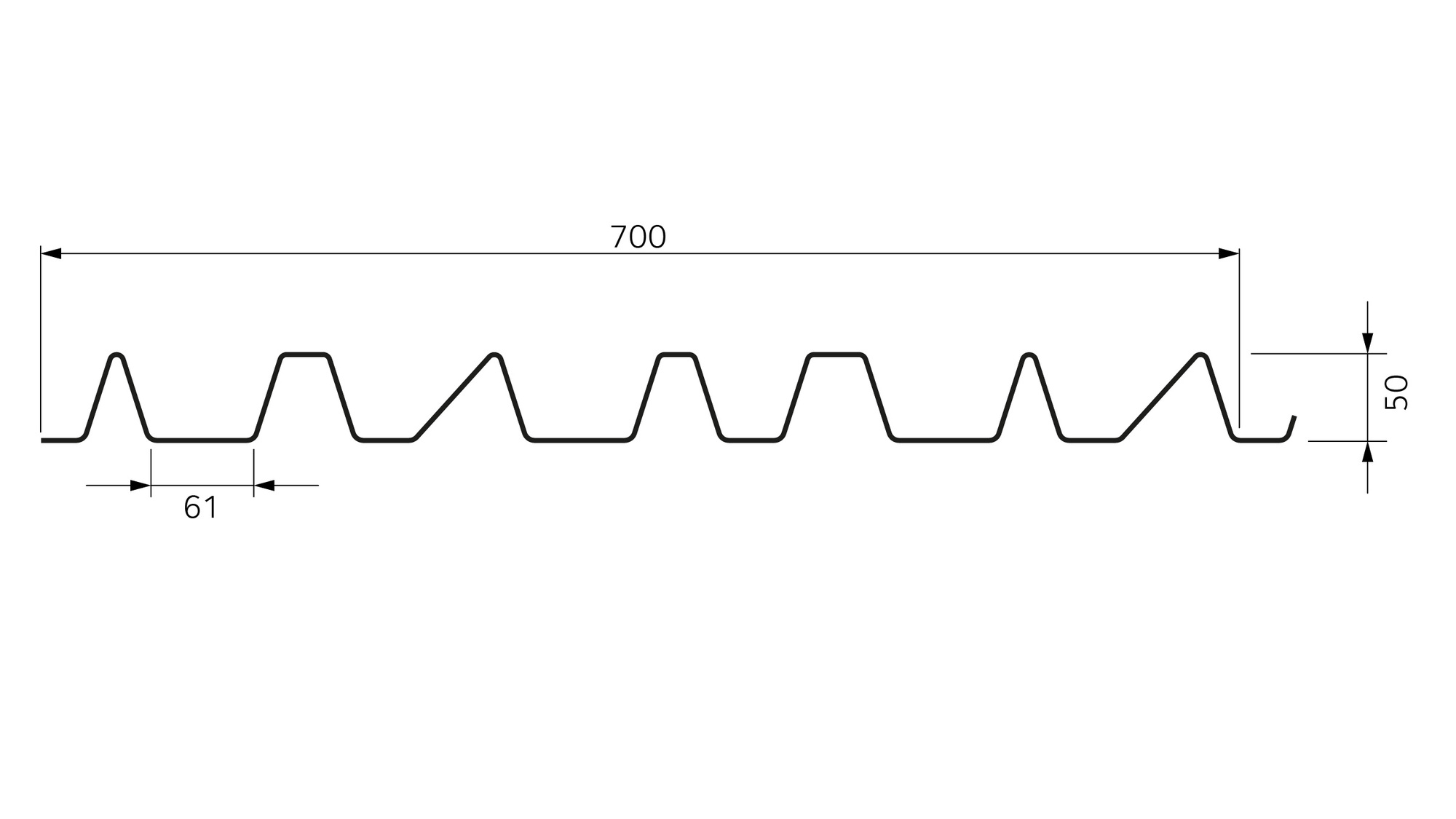Ce profil de bardage asymétrique d’une largeur utile de 700 mm se distingue par ses ondes aléatoires d’une profondeur de 50 mm donnant un effet code-barre à vos façades.