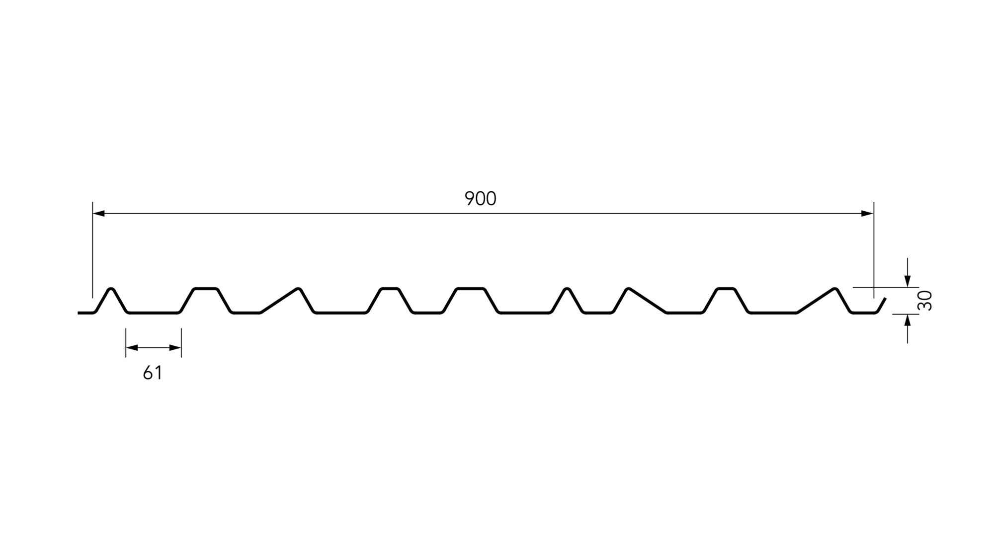 Ce profil de bardage asymétrique d’une largeur utile de 900 mm se distingue par ses ondes aléatoires d’une profondeur de 30 mm donnant un effet code-barre à vos façades.