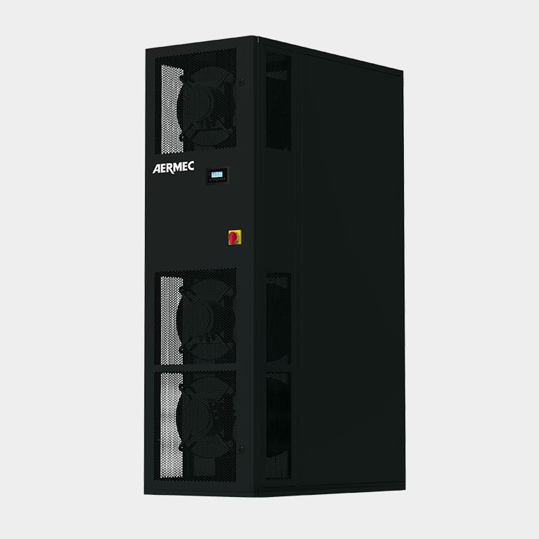 Les unités de la série R sont réalisées dans les mêmes dimensions que celles des racks et présentent une aspiration arrière et un refoulement frontal procurant ainsi plusieurs avantages : la distribution de l'air traité s'effectue près des serveurs, l'aspiration et le refoulement horizontal n'altère pas la direction du flux à l'intérieur de la machine et réduit ainsi les pertes de charge et les consommations des ventilateurs ; l'entretien est facilité par l'accès frontal. La version RXA à détente directe présente, de série, un compresseur inverter sans balais DC et peut être condensée à l'air à l'aide d'un condenseur distant fourni ou bien condensée à l'eau. Également disponible dans la version RXU à batterie à eau réfrigérée. La série R peut être configurée à l'aide du système « Two Sources » avec deux moyens réfrigérants distincts ou avec le système « Free cooling » maximisant les économies d'énergie. Régulation électronique évoluée à microprocesseur pour le contrôle de l'unité, avec carte RS485 de série.