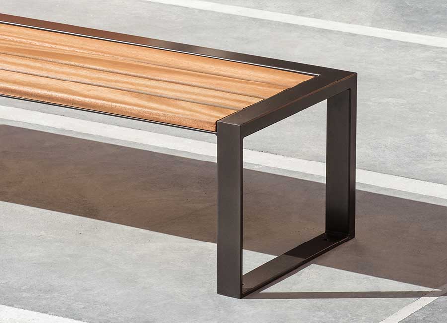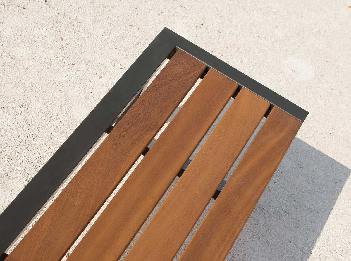 Le produit BONN | Banc simple de Area mobilier urbain est composé de : Bois et dérivés Acier .