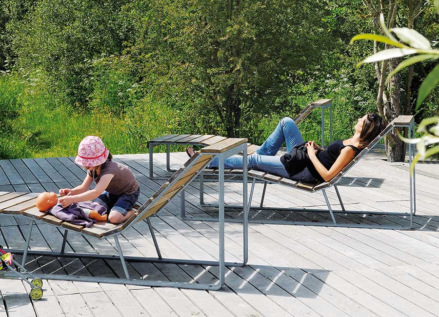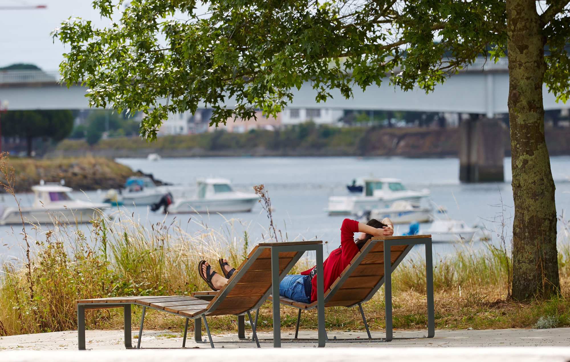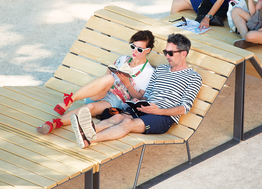 La chaise longue fait partie des éléments de mobilier qui favorisent l’appropriation de l’espace public. Véritable « mode d’assise doux », elle permet de vivre pleinement la ville et s’y sentir chez soi. Avec un dossier plus droit qu’un mobilier de jardin, la chaise longue Atlantique simple offre une ergonomie multiusage ouverte à toutes les envies : s’allonger, lire, jouer, manger…