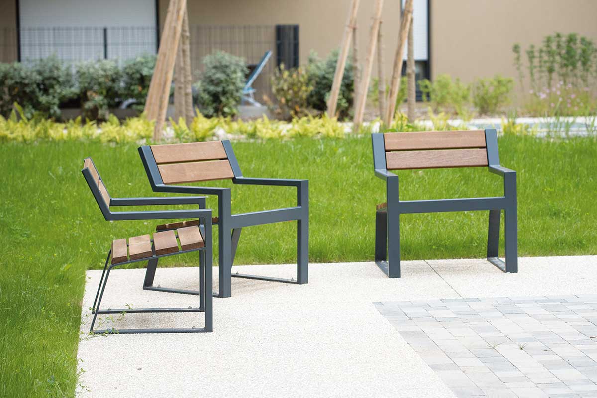 Le produit BERLIN | Fauteuil de Area mobilier urbain est prescrit dans des projets de type : Bâtiments publics Habitat collectif Hôtellerie Restauration Santé Commerce Écoles Sport - Stades Gare - Aeroports .