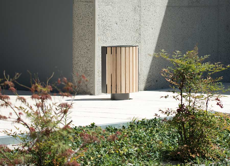 Le produit BAMBOU | Corbeille 50L du fabricant Area mobilier urbain classé dans la catégorie Equipements tertiaires et professionnels > Mobilier urbain et espaces verts > Poubelles - cendriers est référencé dans la Matériauthèque digitale Materiaux.archi.