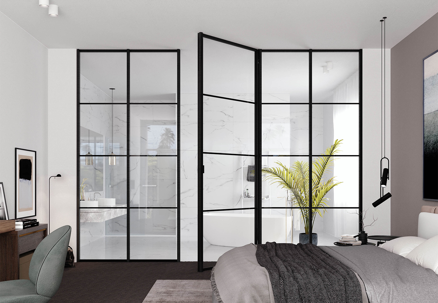 Avec les parois vitrées du concept divina, les espaces peuvent facilement être séparés, sans perte de luminosité ni d’ouverture. La structure en aluminium innovante et le verre confèrent un style industriel et minimaliste convenant parfaitement aussi bien au secteur résidentiel, tertiaire et CHR.