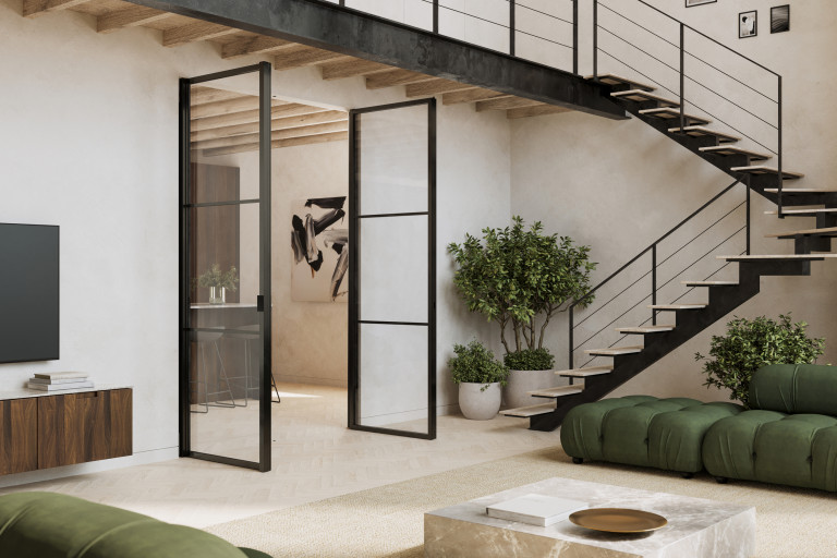 Ses lignées épurées et ses charnières invisibles font de la porte battante divina un élément minimaliste attrayant dans tout intérieur.