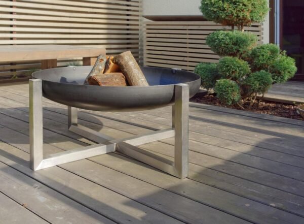 Foyer moderne en acier massif de haute qualité, de haute qualité, fini à la main. Ses caractéristiques compléteront de nombreux décors extérieurs, aussi bien en hiver qu’en été. Ce foyer moderne est disponible en deux tailles différentes : moyenne et grande, ce qui le rend adapté à différents environnements paysagers et choix décoratifs. La surface de la cuvette est poncée pour s’assurer que la rouille naturelle se forme au fil du temps. Les pieds sont finis à la main avec de l’acier inoxydable de la plus haute qualité. Ce produit est très durable et durera de longues années. L’acier au carbone utilisé dans la fabrication de ce bol de foyer développera une belle patine avec le temps. Le bol est fabriqué à partir d’acier solide rouillé (au carbone) et il arrive très brillant, presque chromé. Il rouillerait une fois exposé à l’eau. Habituellement, ce processus naturel prend quelques semaines.
