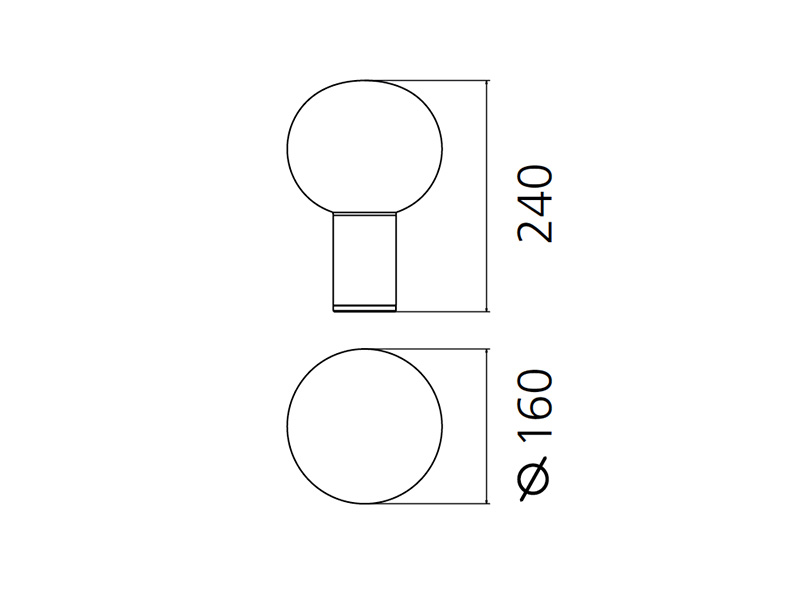 Un socle cylindrique accueille la source lumineuse en la dissimulant et en soutenant le diffuseur en verre soufflé.