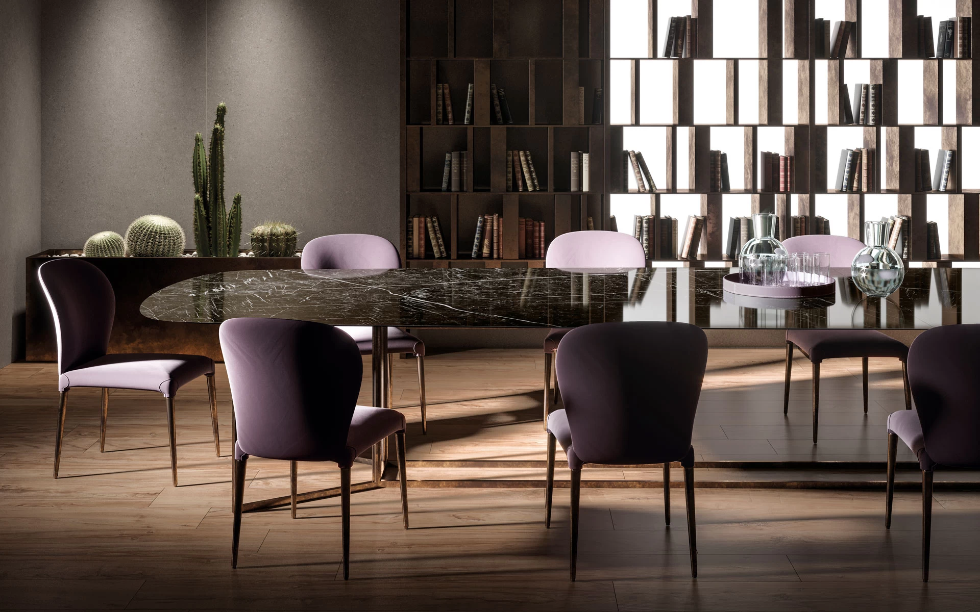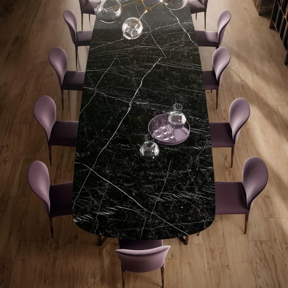 Nero Marquina : Nero Marquina poli a été associé à Kone Pearl d’Atlas Concorde. Ces matériaux proposés avec des éléments décoratifs exclusifs apportent une touche d'élégance et un caractère intemporel aux salles de réunion.