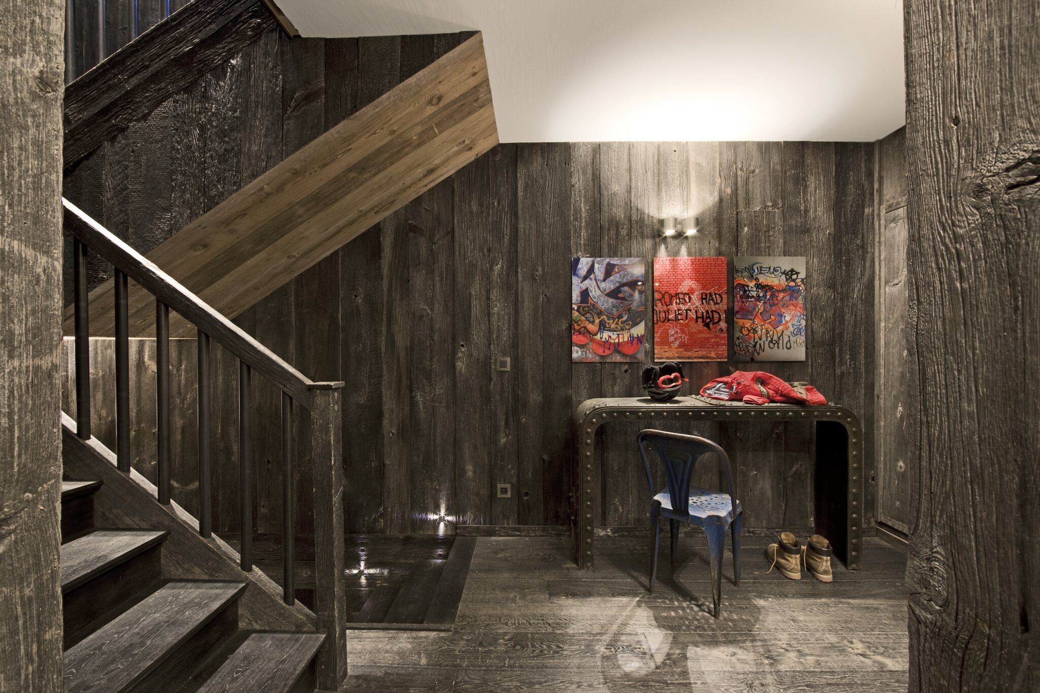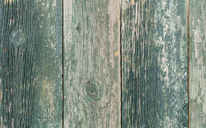 Bois rustique, noeuds traversants de 1 à 4cm présents ou partis, légères fissures, marques d’anciens clous, variation de l’usure de la couleur de la surface exposée.