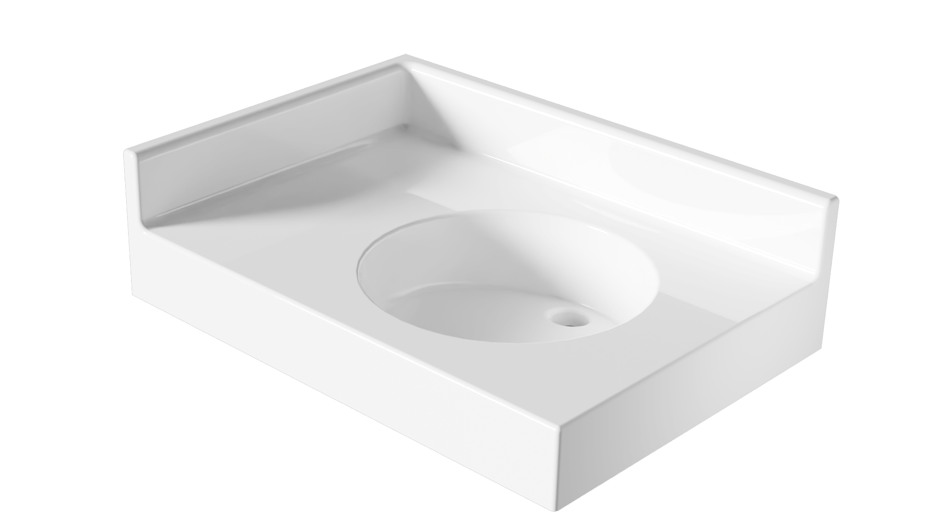 Plan vasque monobloc, autoportant de marque Atout Composites, Gel Coat antibactérien, résistant à la rayure, aux produits d'entretien et réparable, Résine avec charge minérale (>50%) armée de fibre de verre, Résistance Feu/Fumée: Gel Coat M2/F1 - Résine M2/F1, Aucun rayon inférieur à 6mm pour un entretien facilité et une hygiène parfaite.