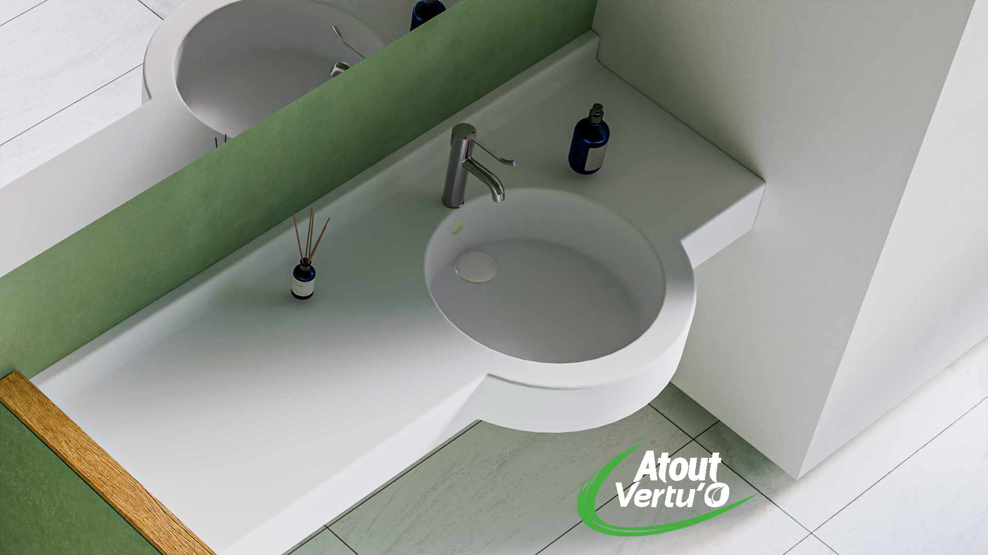 Le produit Plan vasque en niche - VALBONNE - VERTU'O du fabricant ATOUT COMPOSITES classé dans la catégorie Sanitaire - Plomberie - ECS > Appareils sanitaires > Lavabos, vasques est référencé dans la Matériauthèque digitale Materiaux.archi.