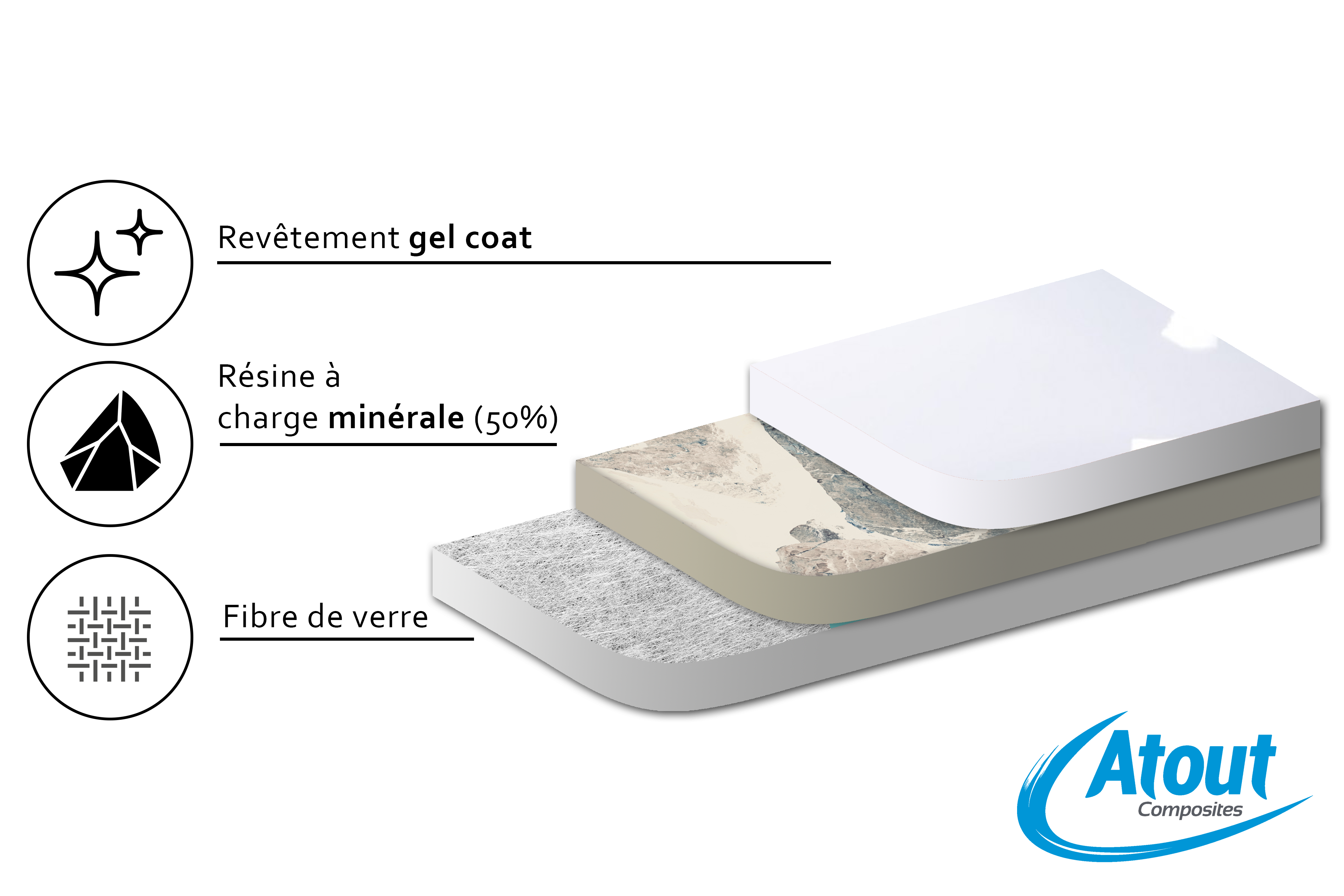 Le produit LAVABO COLLECTIF - PRAGUE de ATOUT COMPOSITES est composé de : Composite .
