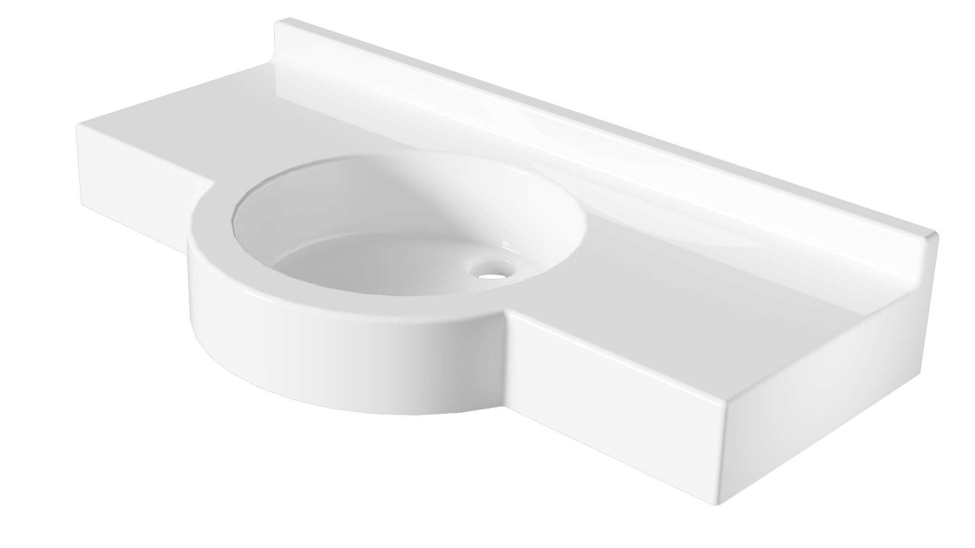 Plan vasque monobloc, autoportant de marque Atout Composites, Gel Coat antibactérien, résistant à la rayure, aux produits d'entretien et réparable, Résine avec charge minérale (>50%) armée de fibre de verre, Résistance Feu/Fumée: Gel Coat M2/F1 - Résine M2/F1, Aucun rayon inférieur à 6mm pour un entretien facilité et une hygiène parfaite.