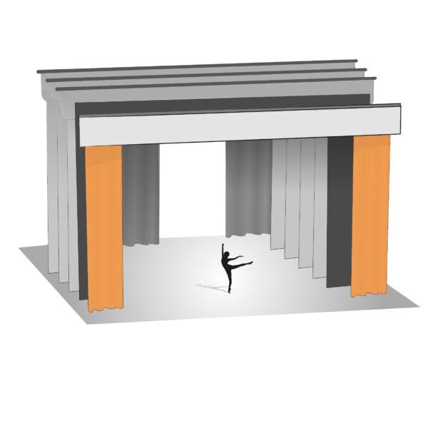 La plupart des rideaux d'avant-scène ont une ouverture à la grecque, c'est à dire une ouverture latérale depuis le centre vers les côtés jardin et cour de la scène. Ce rideau de scène est alors confectionné en 2 parties, et monté sur un rail de scène ou patience scénique. Saviez-vous qu'Azur Scenic vous propose des solutions clés en main et vous propose également le montage sur-mesure et l'installation de rails de scène et patiences scéniques manuelles ou motorisées ? Demandez conseil à nos équipes techniques pour choisir les produits les plus adaptés à votre espace scénique et à votre budget !