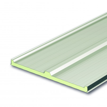 Le panneau sandwich COVISO® FC est un panneau isolé de couverture composé d'un parement extérieur en acier profilé avec un isolant en polyisocianurate (PIR) et d'un parement intérieur en acier faiblement nervuré. Le COVISO® FC est un panneau à fixations cachées grâce à son système de couvre-joint métallique qui vient se clipser entre les panneaux pour couvrir la jonction.