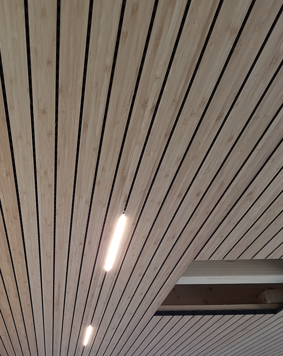 Le produit Dalles de plafond en bambou du fabricant BAMBOO XL classé dans la catégorie Agencement - équipement - Mobilier > Equipements sur sols - murs et plafonds > Panneaux plaqués bois (acoustique, murs, plafonds) est référencé dans la Matériauthèque digitale Materiaux.archi.