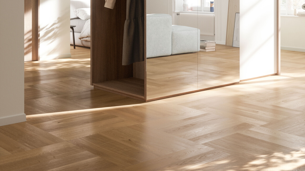 «Formpark Quadrato» est adapté à la pose prisée à bâtons rompus, ainsi qu’à d’autres motifs de pose créatifs. Il est également disponible en surface résistante B-Protect®. Produit en Suisse, le format est en outre à 100% sain pour l’habitat et certifié Bronze «Cradle to Cradle™».