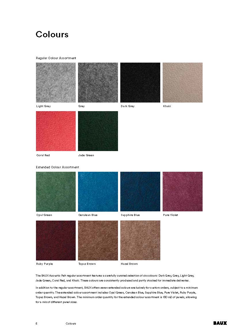 Le produit Felt Recycled PET System de BAUX existe dans les coloris : Gris Vert Rouge Bleu Noir Brun Bordeaux .