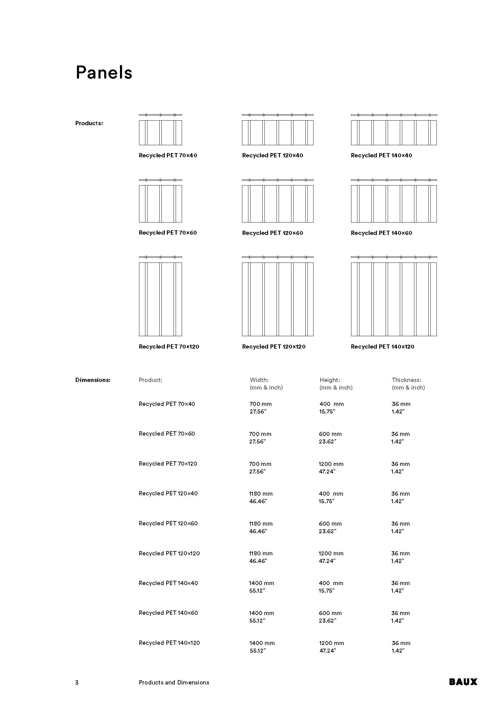 Le produit Felt Recycled PET System du fabicant BAUX a une longueur de 120-70-140 mm, une largeur de 40-60-120 mm,