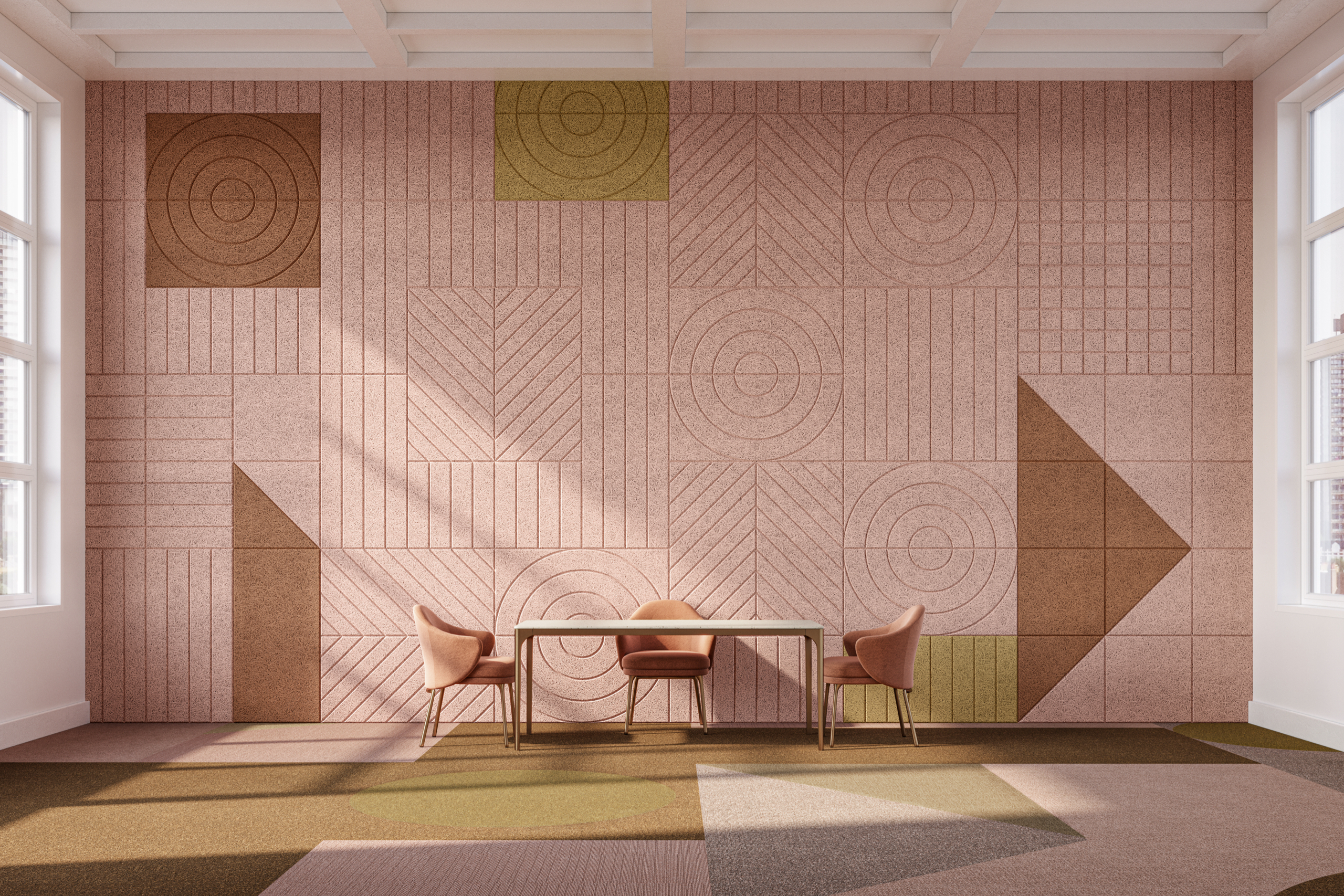 Le panneau acoustique en laine de bois BAUX est un matériau écologique et recyclable, composé de laine de bois, de ciment et d'eau. L'association de ces composants naturels offre de nombreuses caractéristiques fonctionnelles. Les panneaux acoustiques en laine de bois BAUX sont disponibles en sept motifs : matelassé, rayé, diagonal, à carreaux, linéaire, arqué et incurvé. Tous ces motifs peuvent être combinés à l'infini.