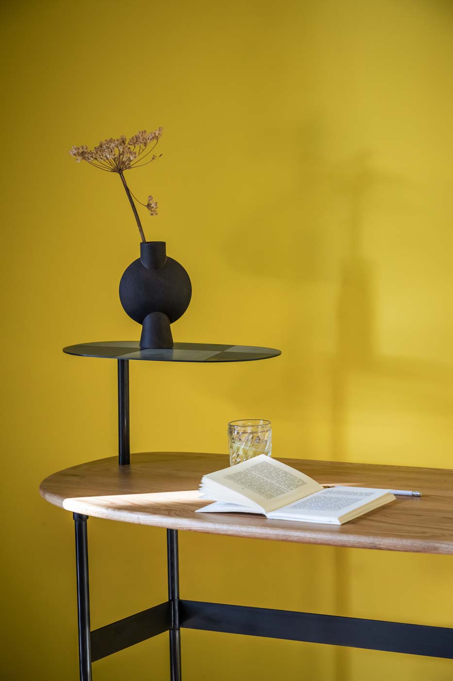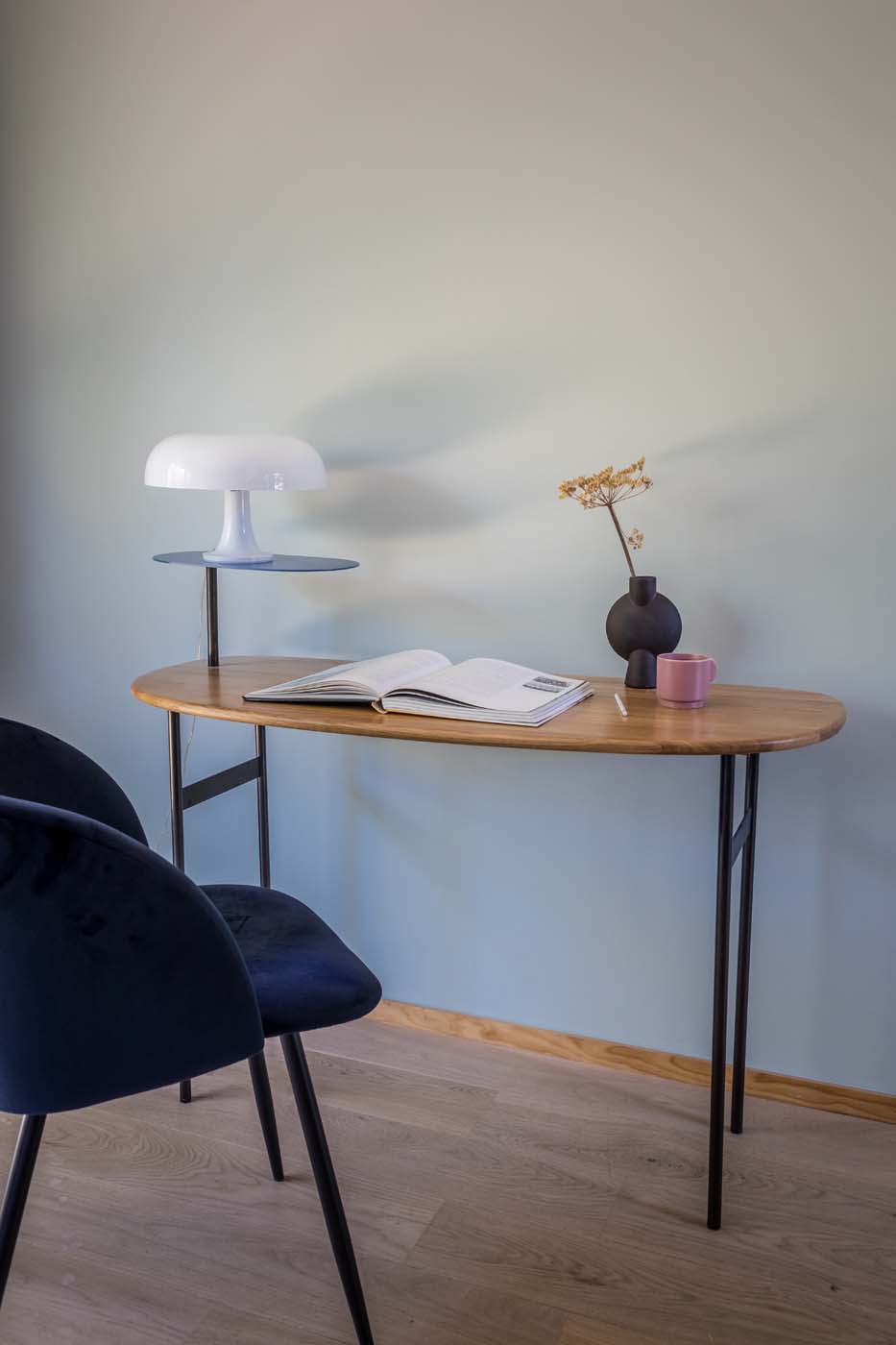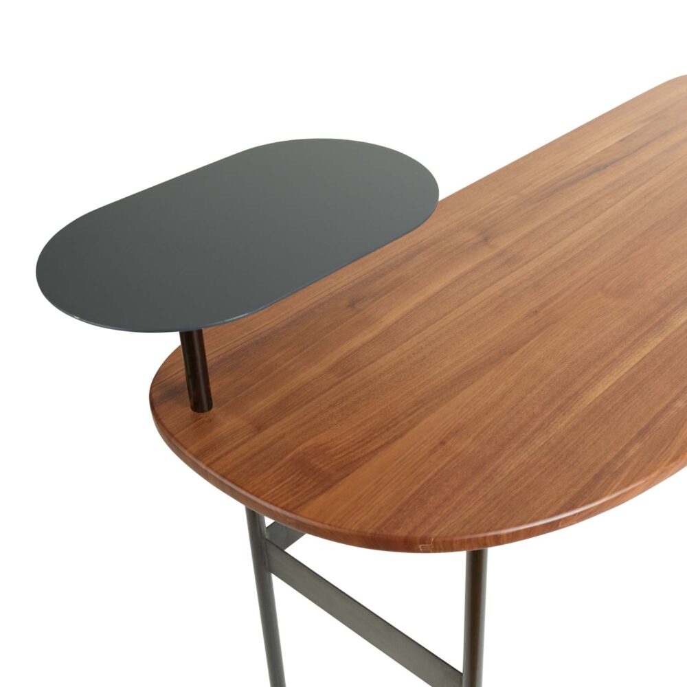 À mi-chemin entre bureau et coiffeuse. Antoinette se pare d’un piétement élancé, d’un plateau aux lignes fluides et d’une tablette en carbone. Ce bureau s’intègre avec discrétion et légèreté pour se prêter au jeu de la double fonctionnalité.