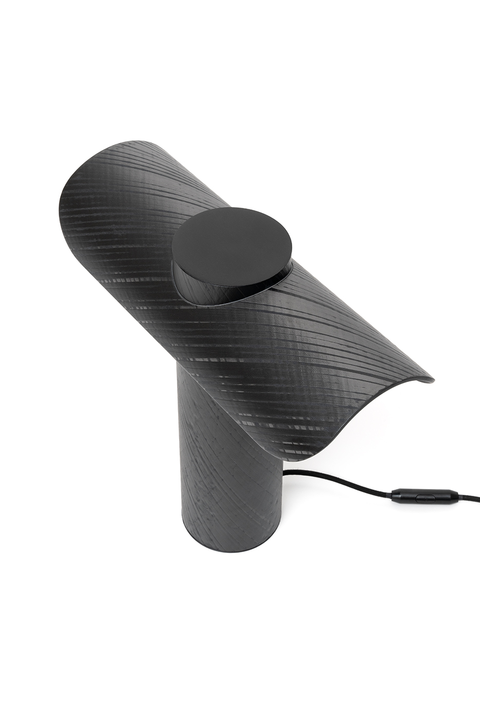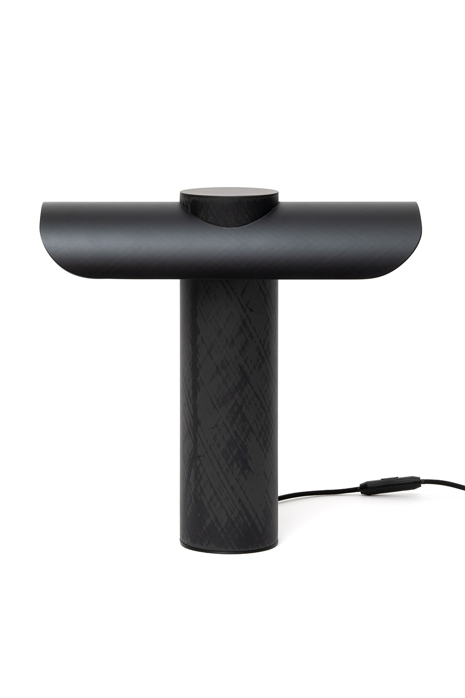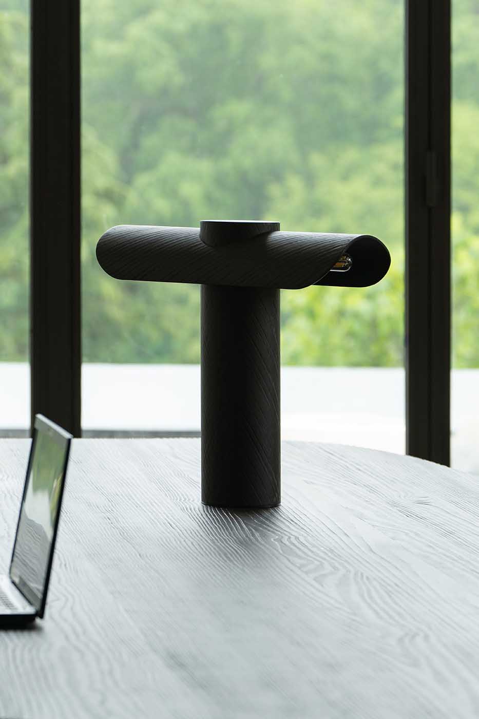 La lampe T est une lampe de bureau qui dispose d’un double éclairage latéral. Tout en fibre de carbone, elle s’impose comme un objet puissant par sa forme et son volume. Vous la trouverez sous deux versions, l’une avec le dessus de la lampe lisse et mat et l’autre sablée.