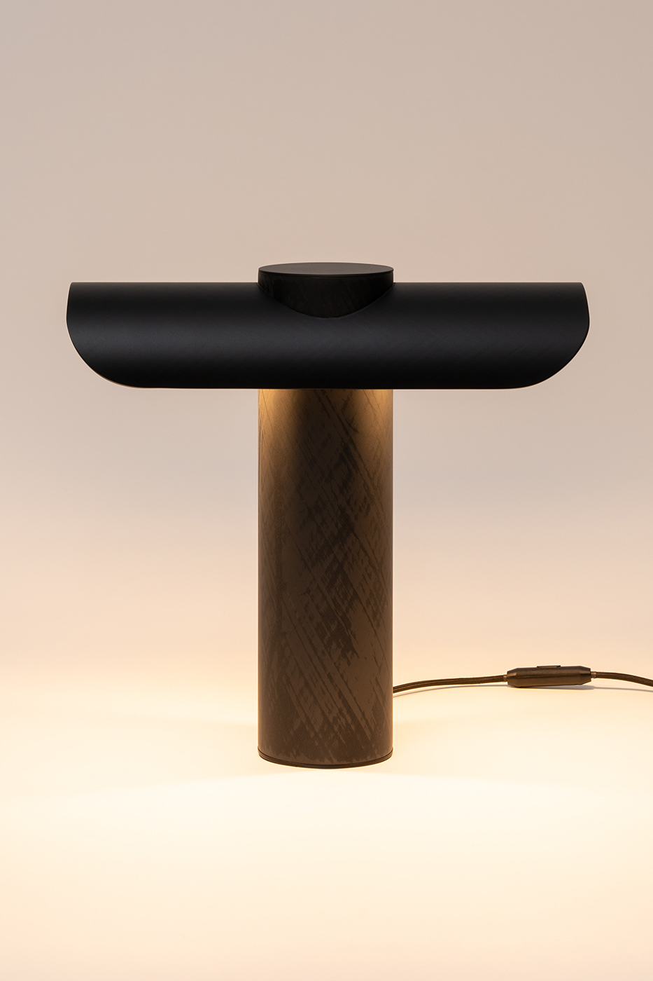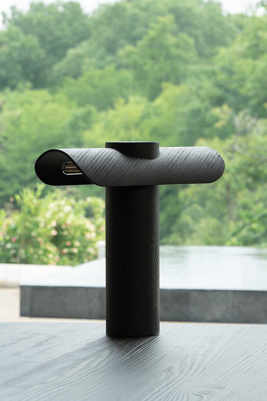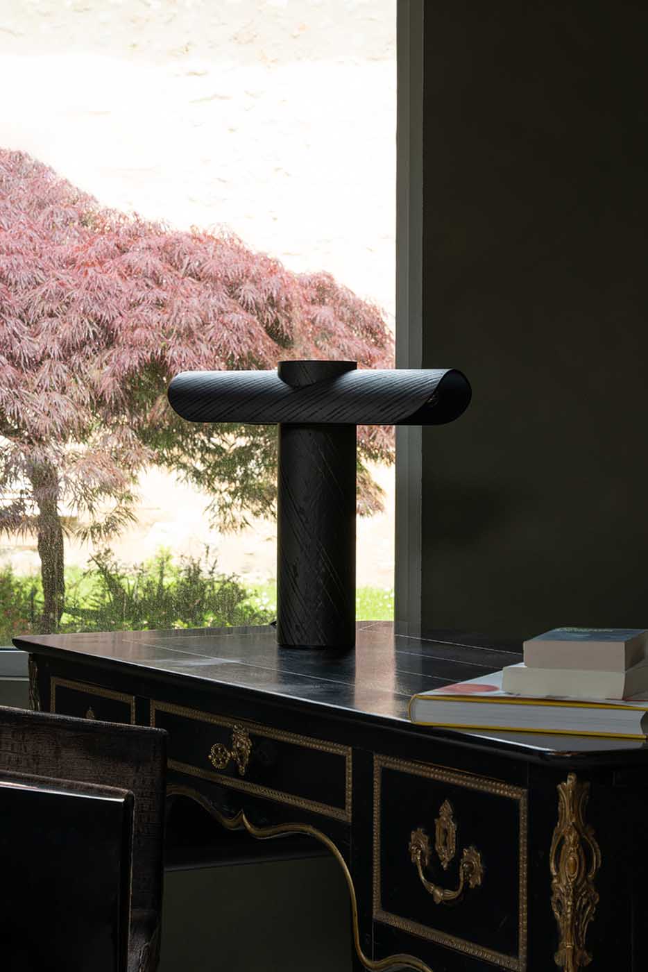 La lampe T est une lampe de bureau qui dispose d’un double éclairage latéral. Tout en fibre de carbone, elle s’impose comme un objet puissant par sa forme et son volume. Vous la trouverez sous deux versions, l’une avec le dessus de la lampe lisse et mat et l’autre sablée.