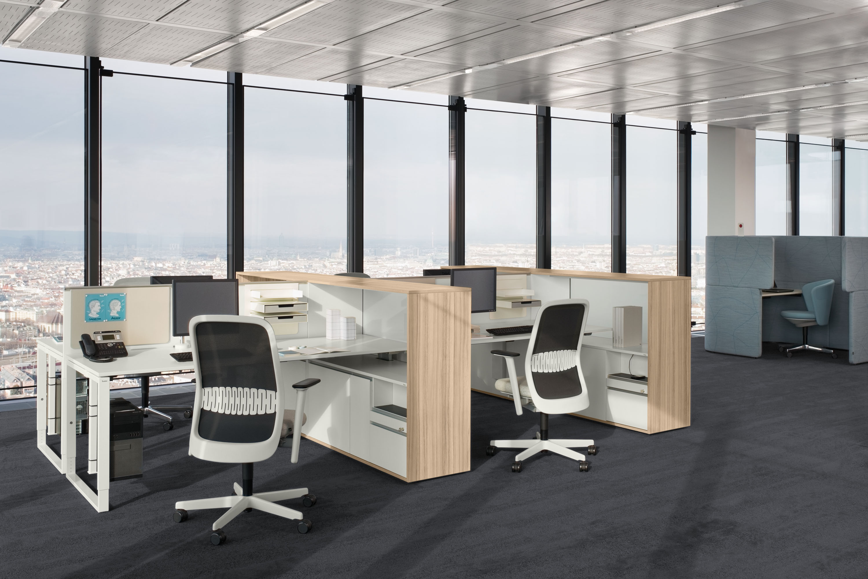 CUBE_S crée un nouveau standard de qualité pour les postes de travail stationnaires dans les aménagements de bureaux compacts. Les modules Workplace confèrent un confort élevé en proposant une organisation du poste de travail personnalisable et intelligente. Dans les bureaux en espace ouvert, tout en optimisant l’utilisation de la surface disponible, ils boostent la concentration et la focalisation sur le travail, ils favorisent le travail en équipe par des éléments transparents et en créant des perspectives dans l’espace.