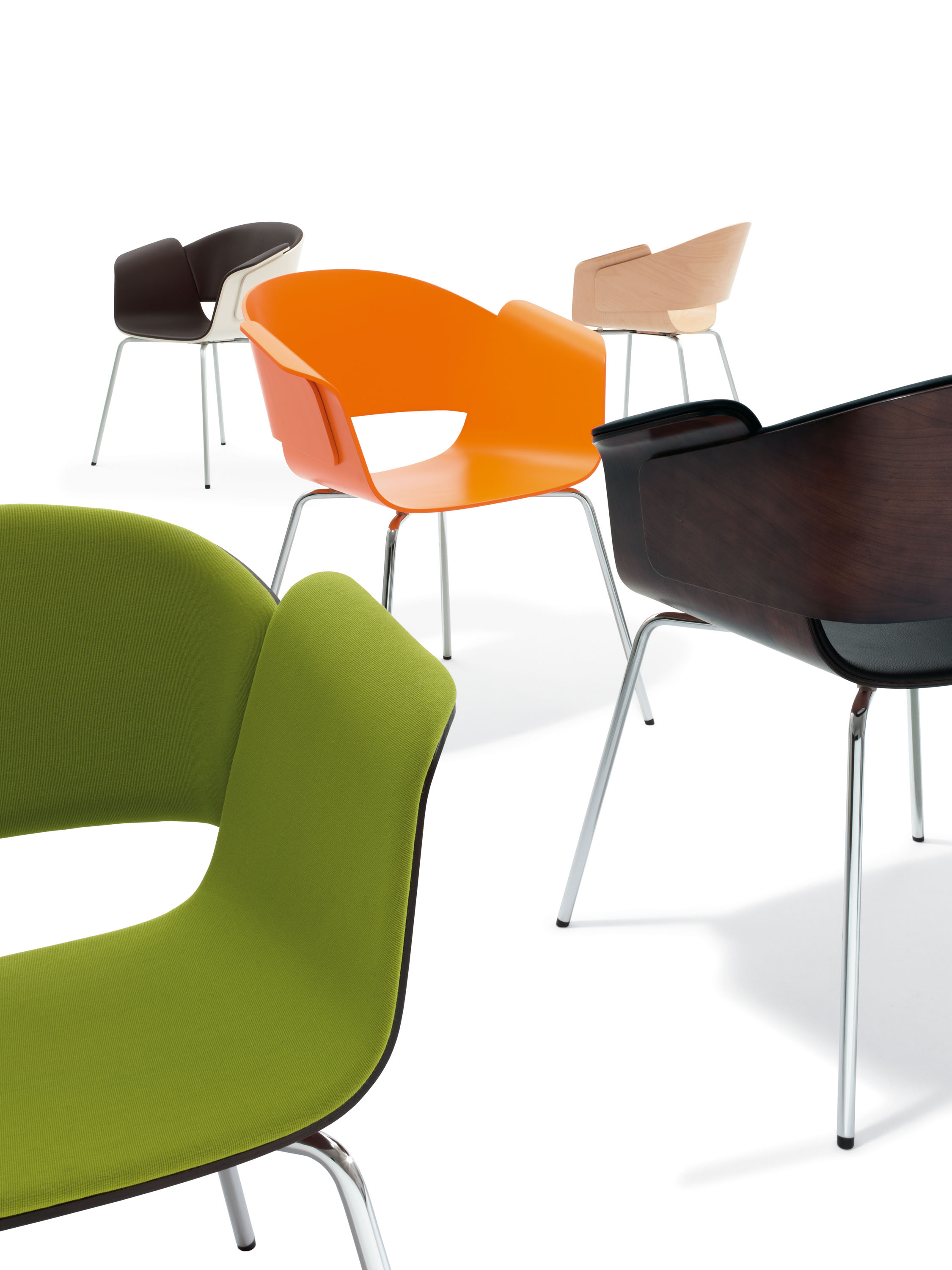 Un siège au design affirmé. Deux coques en bois stratifié dont les formes arrondies et intelligemment associées donnent une impression de qualité. Des lignes douces et fluides en contraste avec l’univers du bureau si rationnel. Il peut être installé dans les zones les plus diverses : salle de conférence, de réunion, salle d’attente, cafétéria, restaurant et lounge. Ou aussi chez soi.