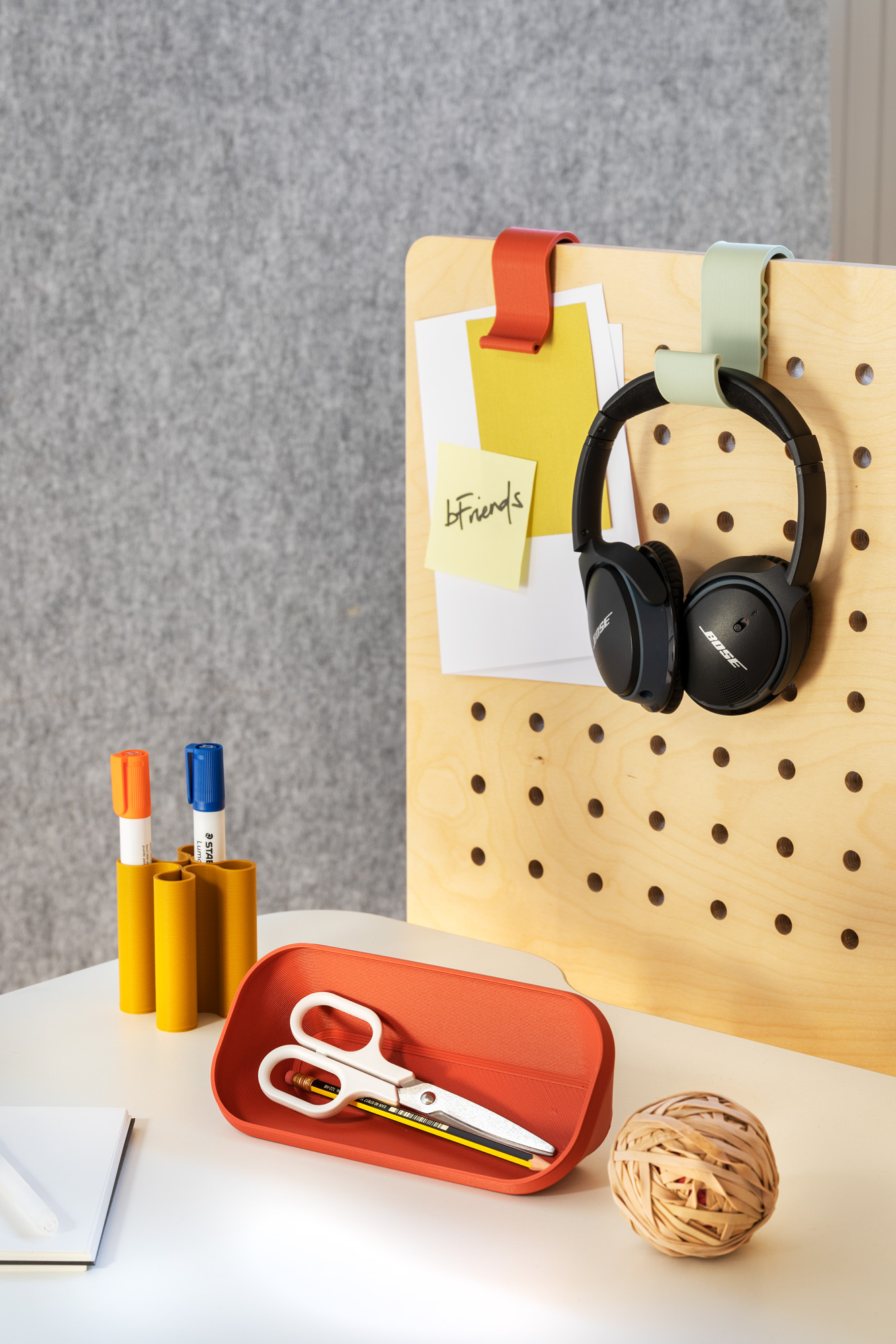 La collection bFRIENDS comprend divers accessoires de rangement et éléments de décoration design et durables qui créent une atmosphère inspirante dans tous les environnements, autant à la maison qu'au bureau. Chaque bFRIENDS, designé par Pearson Lloyd, est imprimé en 3D à partir de filaments de PLA 100% recyclé, issus d’emballage en plastique végétal déjà utilisés.