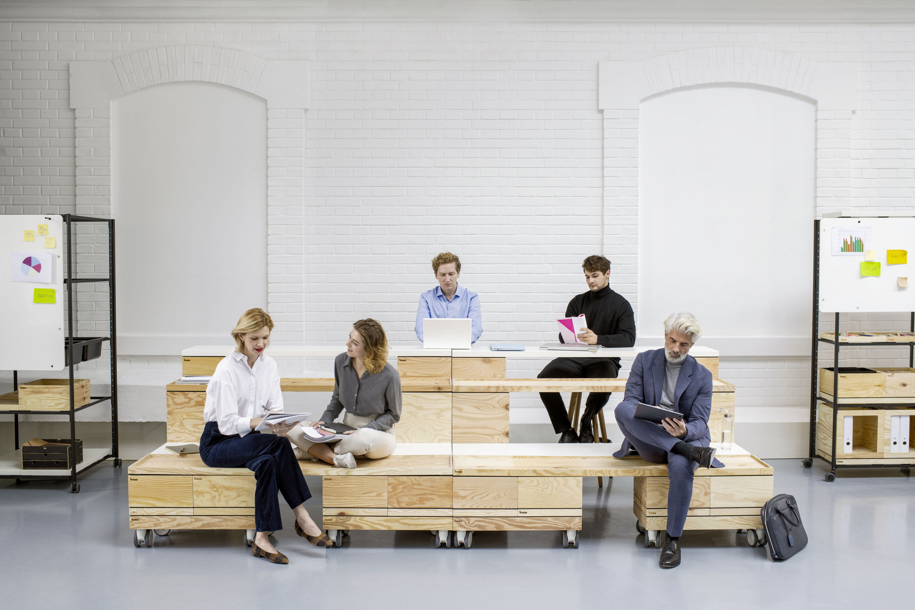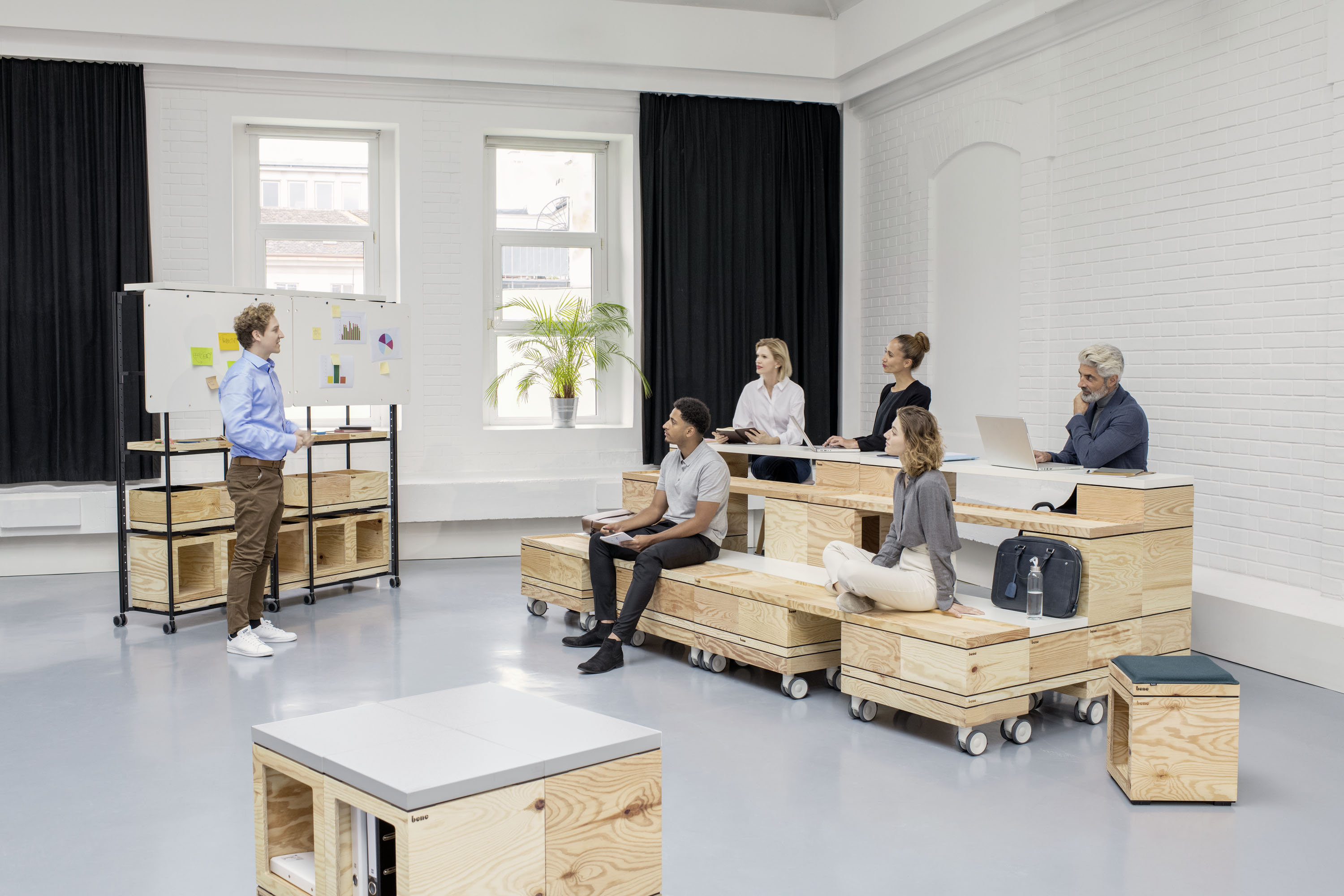 PIXEL ressemble à un cube, mais c’est beaucoup plus que cela. PIXEL, c’est aussi une table, un siège, ou des gradins. C’est un module qui se combine à l’infini pour créer en un tour de main des espaces dédiés aux équipes.