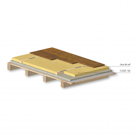 Grâce à la lisse en bois optionnelle, il est possible de poser et de fixer des revêtements de sol tels que des lames de parquet directement sur le panneau isolant en fibres de bois.