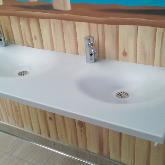 Le Corian® est adapté à tous les lieux publics : autoroutes, centres commerciaux, parc d’attraction, musées, station de métro… Le matériau allie l’artistique à l’utilitaire.