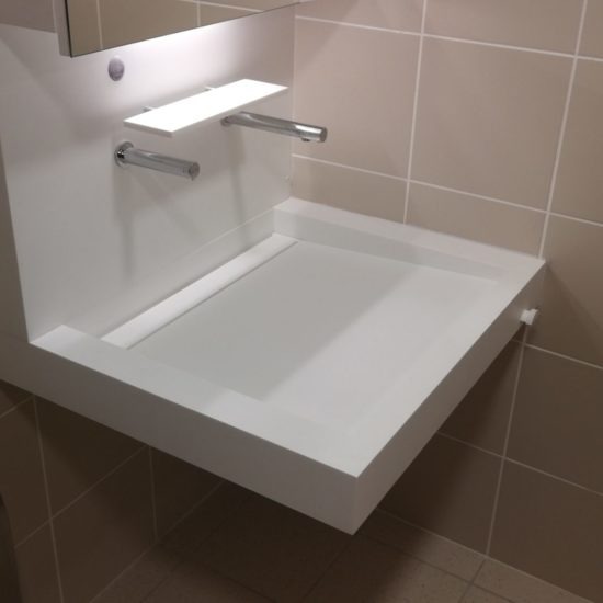 Qu’ils soient standards ou sur mesure, à l’unité ou en série, nos plans vasques en Solid Surface Corian® vous donneront la plus grande satisfaction grâce à leur performance et leur esthétisme. Grâce à notre gamme Aquarelle, nous pouvons fabriquer techniquement du sur mesure à partir d’une offre standard.