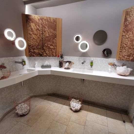 Pour chacun de nos modèles, il est possible d’ajouter des options qui permettront de rendre votre projet complètement unique. Que cela soit sur la taille des retombées ou des dosserets, une découpe porte-serviette ou porte savon, l’arrondissement de certains angles, ou encore des cache-siphon, tout est possible !